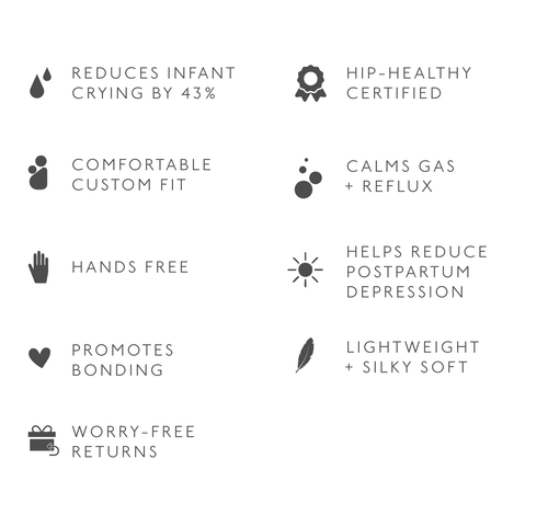 Reduce infant crying, increase connection, and enjoy hands-free wearing in our buttery-soft and breathable Solly Wrap. Even weight distribution and a custom fit keep you + baby comfortable for hours on end, while our lightweight fabric makes babywearing possible (and, in fact, enjoyable!) year-round.